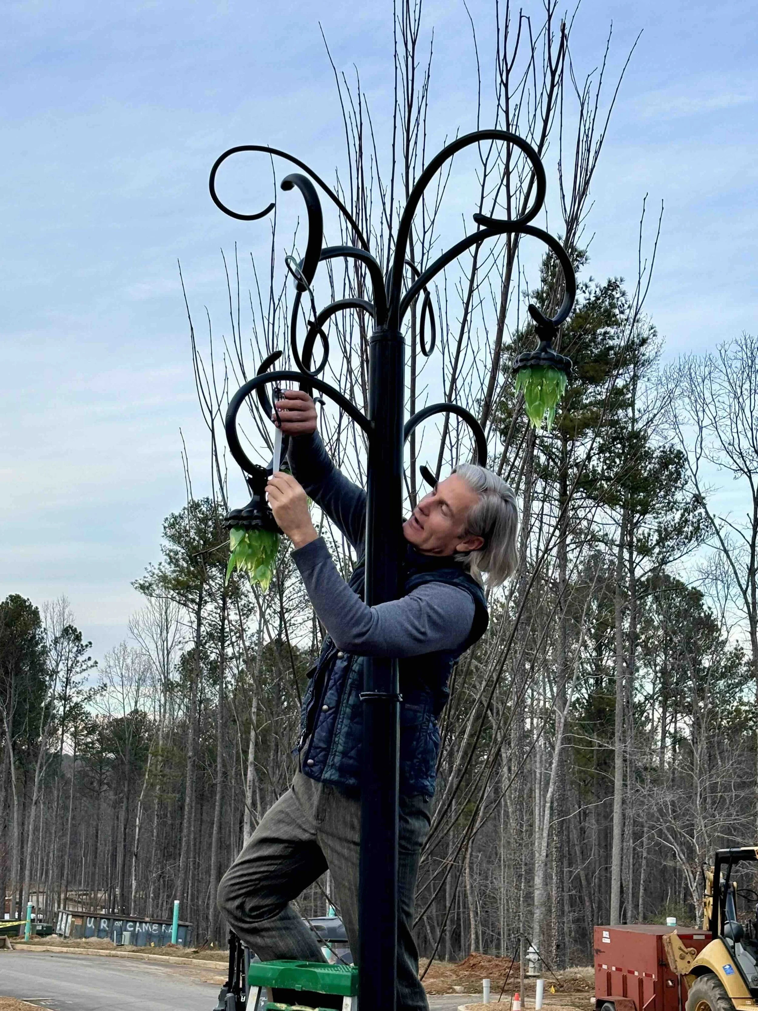 Commissioned to enhance each neighborhood’s commercial character, artist and designer Robert Rausch created a series of street lights. His work features Art Deco tree motifs for Selborne, classic gas lanterns for Crossroad, electrified lanterns on wooden poles for Grange, sleek cylindrical metal beacons and globes for Mado, and Victorian-inspired forms with hand-blown glass for Spela.